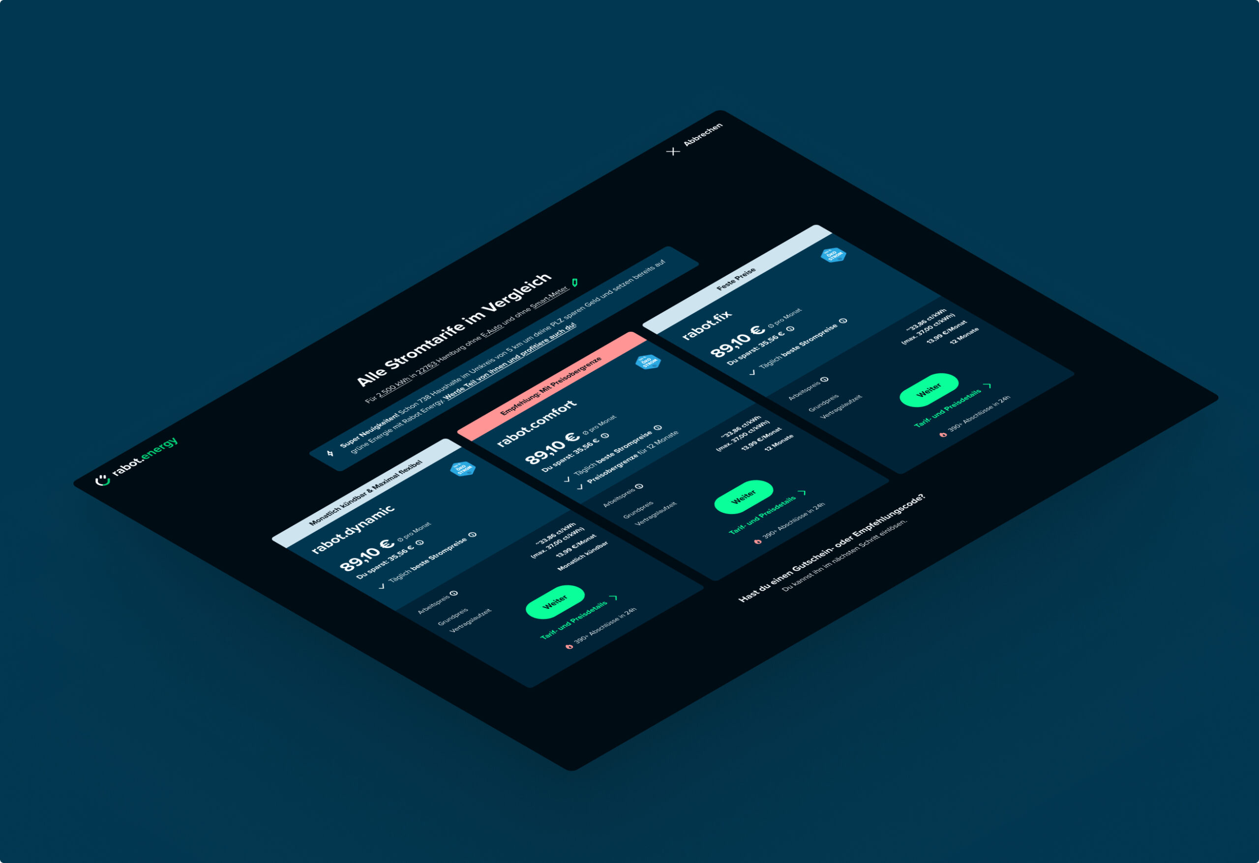 Das neue UX-Designsystem unterstützt Rabot Energy bei der klaren Positionierung als professioneller Anbieter im Energiemarkt. Die Nutzerführung ist verständlich, die Marke wirkt vertrauenswürdig und die Gestaltung lässt sich effizient über unterschiedliche Plattformen hinweg ausrollen.