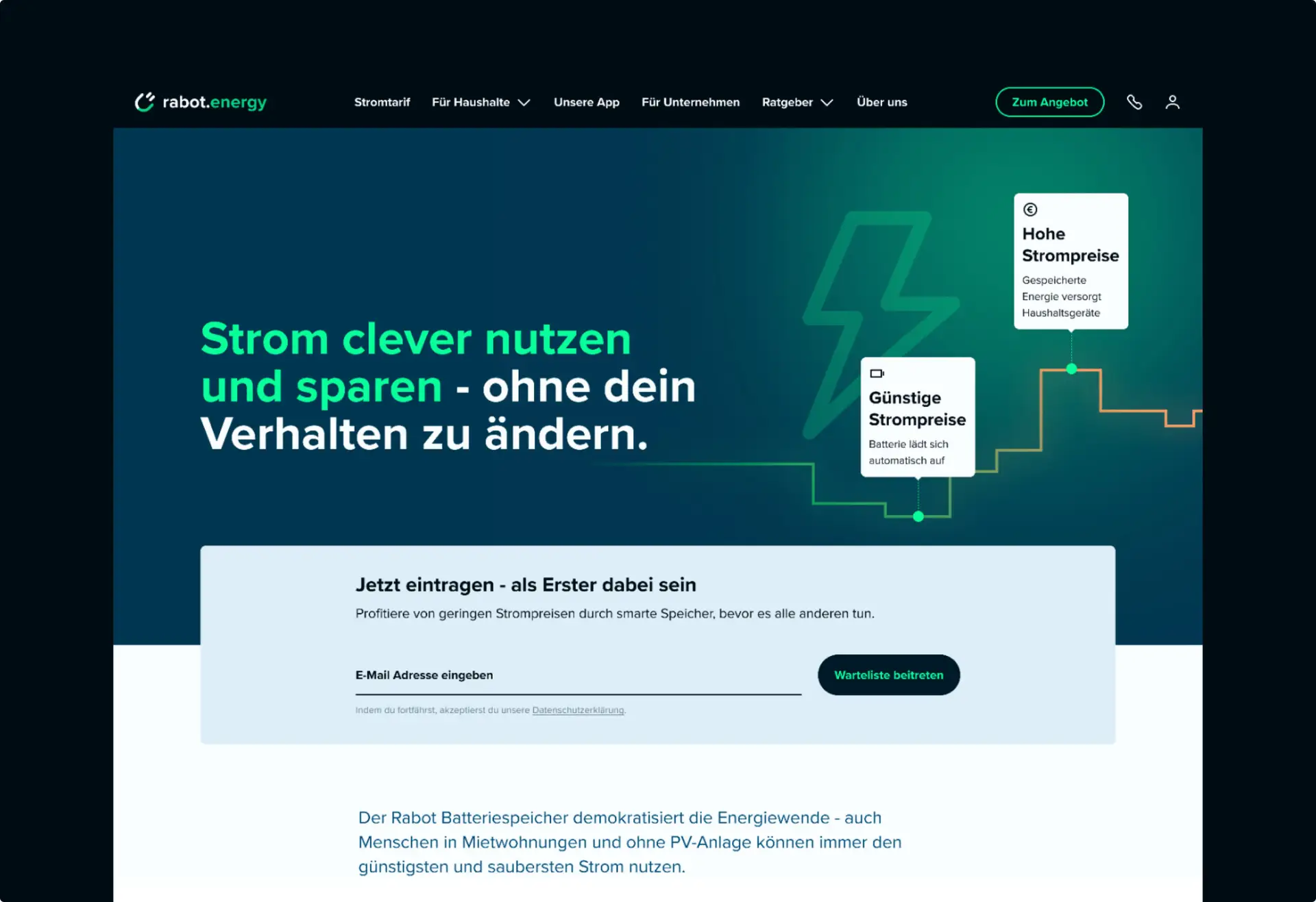 Rabot Energy befand sich im Übergang vom Startup zu einem etablierten Unternehmen der Energiewende. Der bestehende Markenauftritt war funktional, jedoch nicht ausreichend konsistent, skalierbar oder vertrauensbildend für eine wachsende digitale Nutzerbasis. Insbesondere in digitalen Touchpoints fehlte eine klare visuelle Hierarchie und Wiedererkennbarkeit.